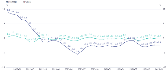 1月份,受春节沐日等身分影响,工业出产处于淡季,天下PPI环比下落0.2%,同比下落2.3%。